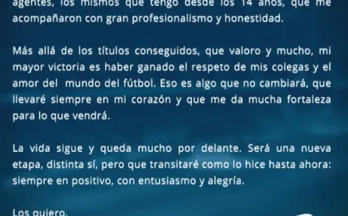 Para cerrar, Agüero agradeció a “todos sus formadores, compañeros, colegas, técnicos, médicos y dirigentes por haberle permitido desarrollar su carreara en las mejores condiciones”, hizo un apartado para sus agentes, porque lo “acompañaron con gran profesionalismo y honestidad” y se mostró agradecido por el respeto ganado dentro del mundo del fútbol.