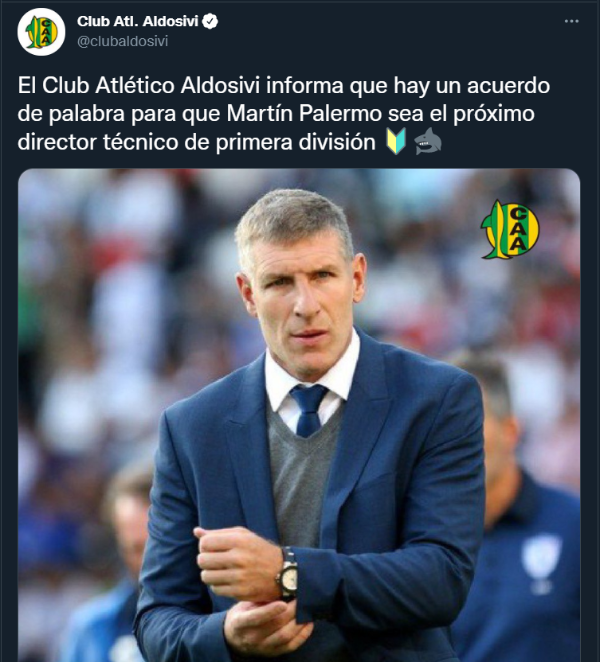 Así fue como, rápidamente, Aldosivi salió a buscar un reemplazante y no demoró en conseguirlo. Las negociaciones con Palermo fueron extremadamente rápidas y los detalles no demoraron en solucionarse. Por ello, este martes, por intermedio de sus redes sociales oficiales, la escuadra de Mar del Plata lo confirmó como nuevo director técnico.