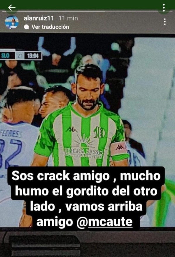 Pero no todo quedó en el José María Minella, ya que minutos después de que Ortigoza y Cauteruccio fueran expulsados, a través de su cuenta de Instagram, Alan Ruiz le puso más picante al asunto.