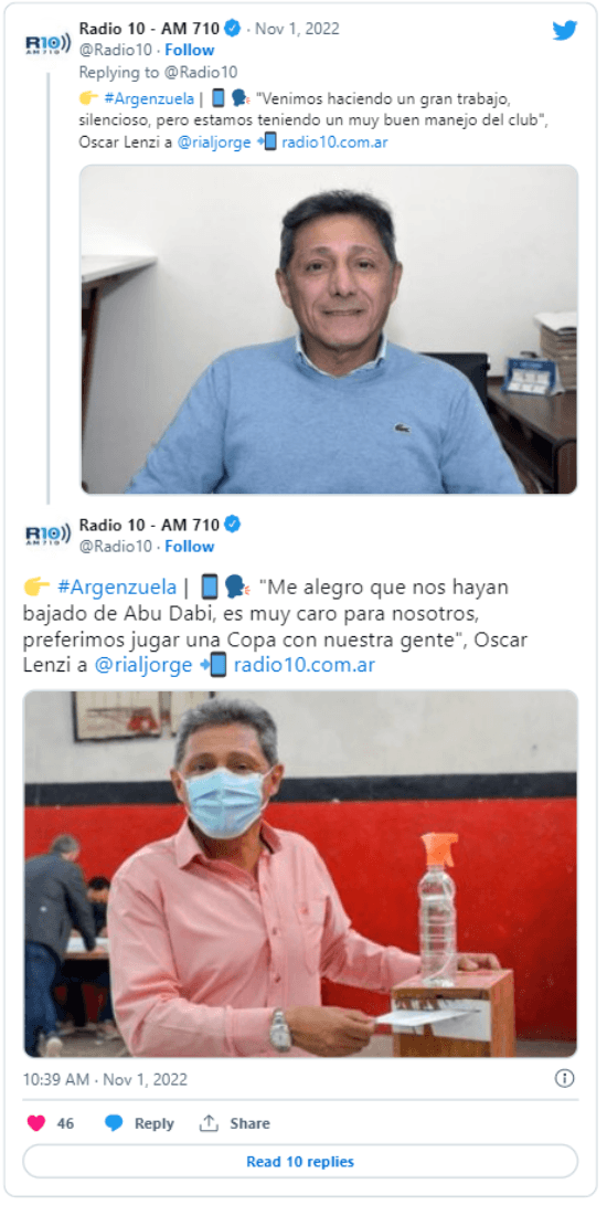 Fue tanto el apoyo que recibió el club de Paraná que Óscar Lenzi, su presidente, habló en Radio 10 sorprendido por la situación.“No esperábamos que todo el mundo nos respalde tras esta decisión que tomaron”, aseguró en diálogo con Jorge Rial.