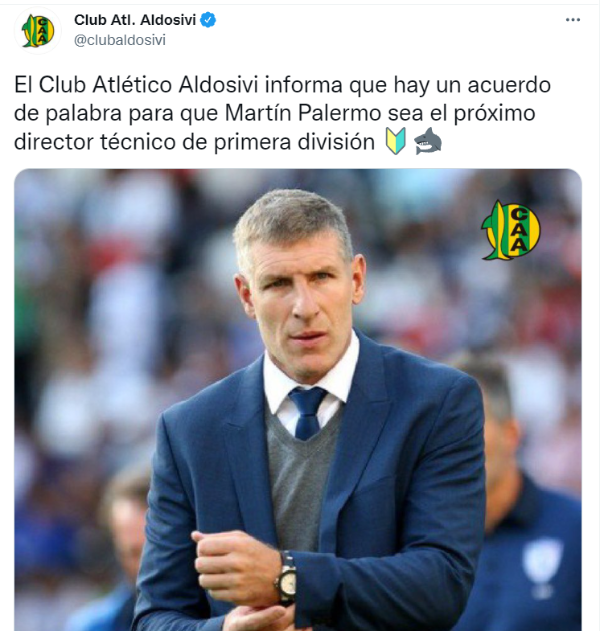 Hoy, como si ya tuviesen todo listo, y para sorpresa de muchos, soltaron: “El Club Atlético Aldosivi informa que hay un acuerdo de palabra para que Martín Palermo sea el próximo director técnico de primera división”.