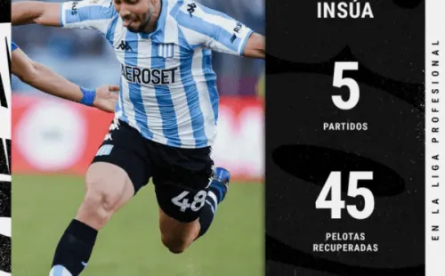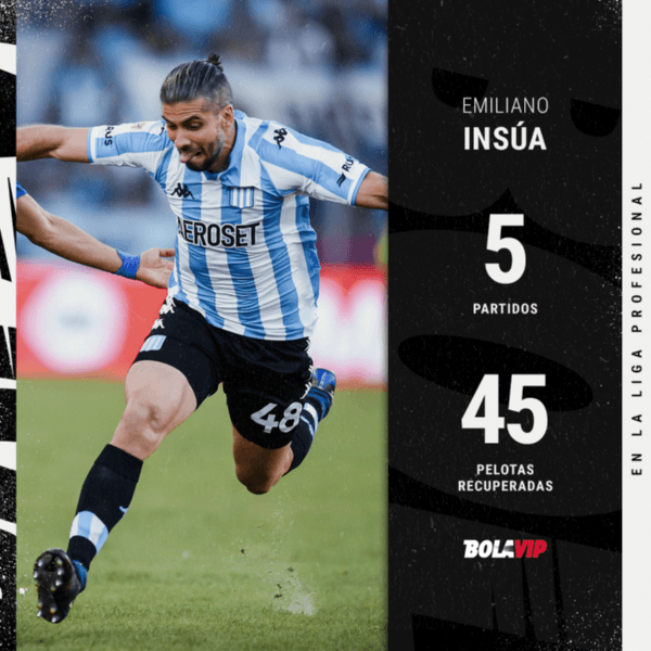 El jugador en cuestión es Emiliano Insúa. Ex Liverpool, Atlético Madrid y Stuttgart, entre otros, el defensor de 33 años es un valor fundamental en Racing, único equipo invicto de la pasada Copa de la Liga. Posicionado como segundo marcador central, es nada menos que el jugador del torneo con más pelotas recuperadas (45) en el torneo, promediando ¡9 por partido!