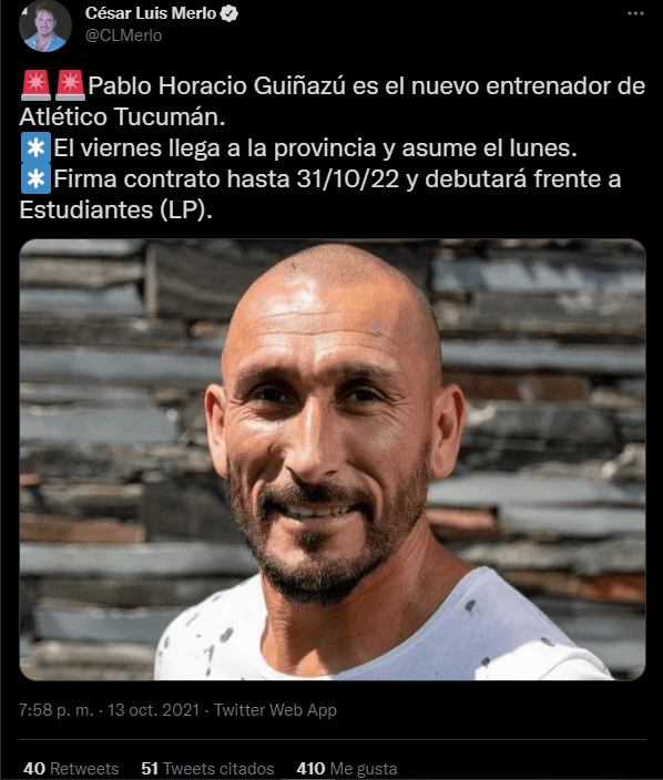 El nuevo mandamás del equipo de Tucumán será ni más ni menos que Pablo Guiñazú. La noticia sorprendió a todos porque lo sacaron de la galera, ya que no estaba en los planes de nadie.