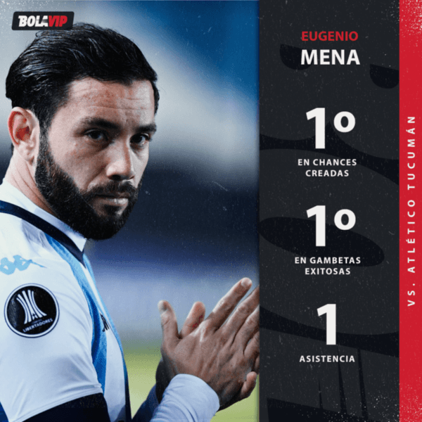 Uno de los mejores en su puesto en el torneo, seguramente. A su concentración defensiva y su voluntad y ambición para atacar, Mena le suma su espíritu ganador que le conocimos en la Selección de Chile. Ante Atlético Tucumán, fue el jugador que más chances creó (5) y el que más gambetas completó (4). Además, asistió a Rojas para el 2 a 0 final.La rompió.