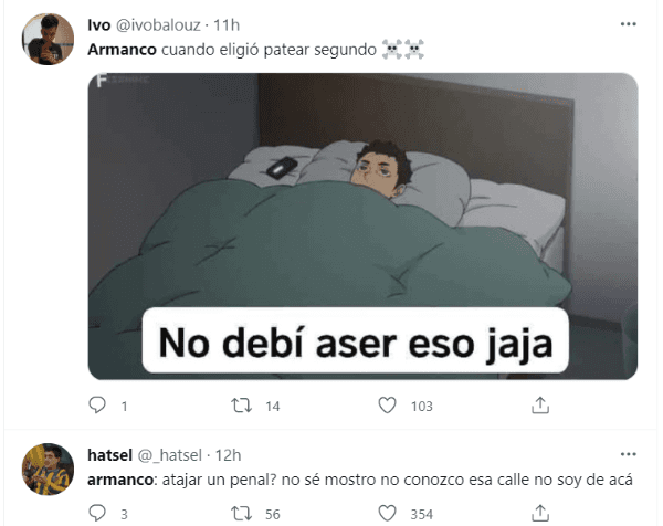 Y justamente luego de la tanda de tiros desde los 12 pasos, los hinchas del equipo que ya está en cuartos de final de dicho torneo explotaron contra el arquero rival, agradeciendo que no haya sido el titular en la Copa América y poniéndole un muy duro apodo.