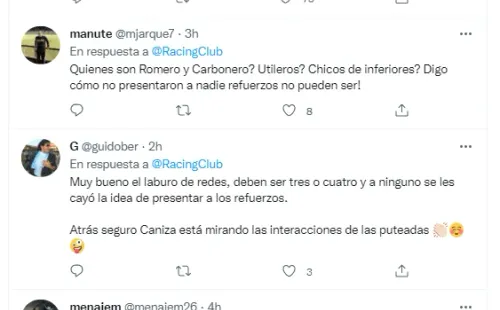 El extremo, al igual que el punta proveniente del PSV, no fue presentado oficialmente por las redes oficiales del club y los hinchas volvieron a hacérselo notar a sucommunity manager.