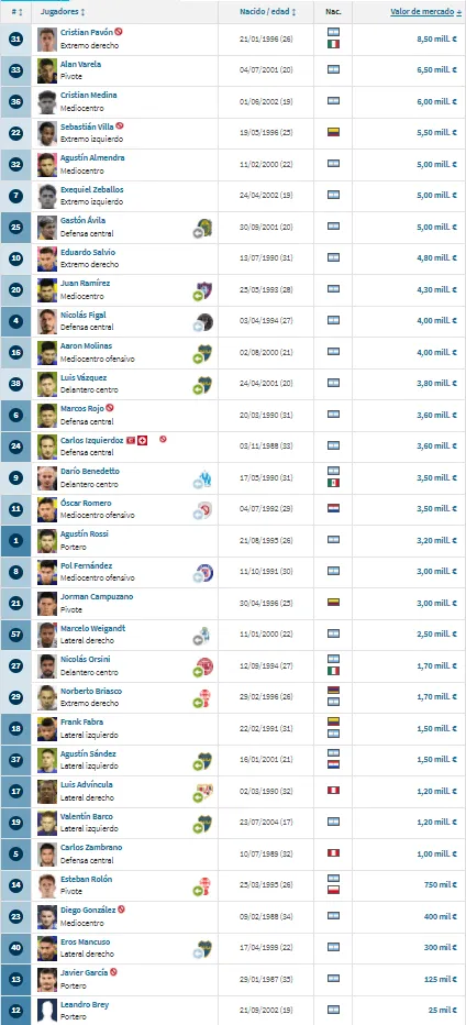Tal como informa Transfermarkt, ningún futbolista del Xeneize cotiza como para estar en el top 3 del Superclásico, aunque Cristian Pavón ingresa como cuarto: 8,5 millones de euros. A Kichan lo siguen Alan Varela (6,5 millones de euros), Cristian Medina (6M), Sebastián Villa (5,5M) y Agustín Almendra (5M).
