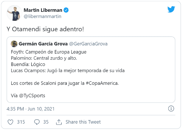 Martín Liberman fue uno de los que no ocultó sus sensaciones tras leer el listado, pero su reacción no se debe a ninguno de los jugadores recién mencionados, sino a uno de los que está adentro y puede ser titular. “¡Y Otamendi sigue adentro!”, soltó el periodista.