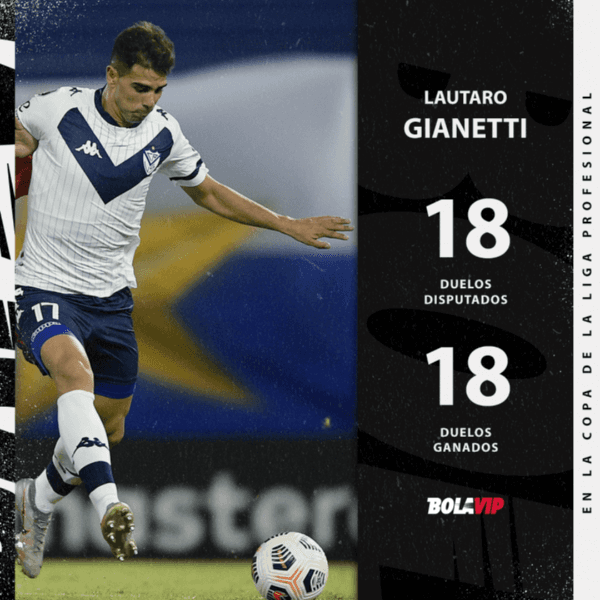 El jugador en cuestión es nada menos que Lautaro Gianetti, defensory figura del Vélez de Mauricio Pellegrino. En sus dos encuentros disputados, el central de 28 años ganó los 18 duelos individuales que disputó, siendo el único en lograrlo entre todos los quejugaronlos 180 minutos.El detalle: 11 fueron aéreos y 7por el suelo. Impasable.