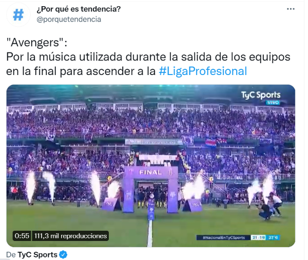 Tanto los presentes en el estadio de Banfield como las miles de personas que seguían el partido por televisión se hicieron eco de la música de la famosa película de superhéroes estadounidense estrenada en2012 y basada en el equipo de superhéroes homónimo de Marvel Comics.
