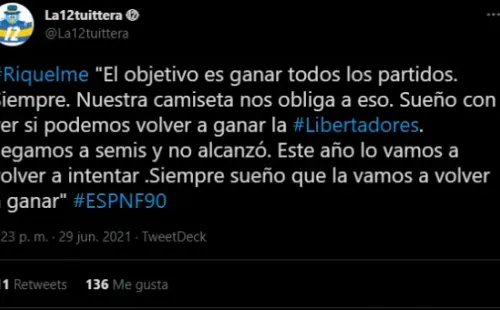 En diálogo con el programa conducido por Sebastián Vignolo, Riquelmehabló del sueño de Boca en la Libertadores, los problemas económicos del club y como eso afecta al mercado de pases, el contexto actual del equipo, la gestión de Angelici previa a su llegada, entre otros temas.