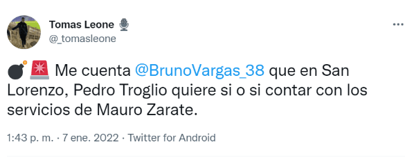 El delantero que quieren en San Lorenzo y harán todo lo posible para satisfacer las necesidades del flamante entrenador es, nada más ni nada menos que Mauro Zárate. Y tras quedar en libertad de acción luego de su paso por América Mineiro, hubo una luz de esperanza en el Nuevo Gasómetro.