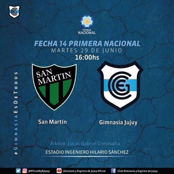 Gimnasia y Esgrima de Jujuy, por su lado, sabe bien de la realidad de su oponente y tratará de incomodarlo durante los primeros minutos. Los visitantes están estacionados en la sexta casilla y reconocen que en caso de ganar podrán escalar posiciones en la batalla por el ascenso.