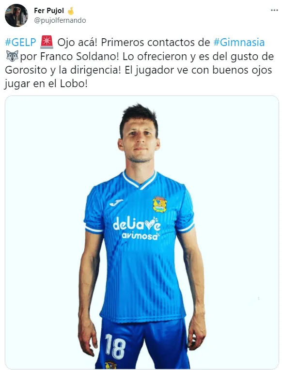 Según Fernando Pujol, periodista de LaCielo en La Plata, ya hubo un primer contacto entre el presidente y el representante de Soldano. El club manifestó su interés, Gorosito dio el visto bueno y el futbolista no vería con malos ojos retornar al fútbol argentino. Ahora, a sus 27 años, milita en Fuenlabrada de la Segunda División de España.