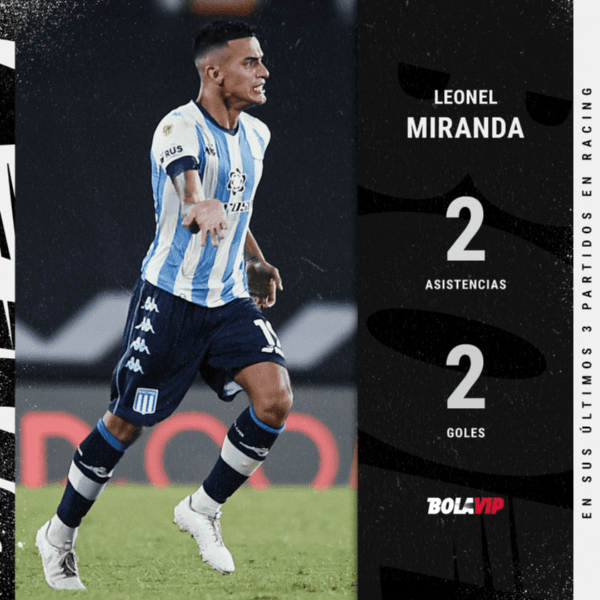 Si tomamos sus últimos 3 partidos, luego de adaptarse a su nueva función, Miranda mostró un protagonismo esencial en el juego. Corta, traslada, distribuye y hasta llega con criterio a los metros finales para culminar la jugada. De los 153pases que intentó en esos encuentros, 126llegaron a destino (82%). Asimismo, recuperó 24pelotas y acumuló 2 goles y 2 asistencias. Más que un refuerzo.