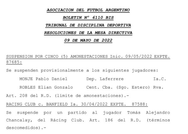 La ausencia de Tomás Chancalay fue un dolor de cabeza para Gago. El ex delantero de Colón había sido expulsado frente a Banfield por un supuesto insulto al árbitro Germán Delfino, y se esperaba que lo sancionaran con dos jornadas. Sin embargo, desde la Asociación del Fútbol Argentino confirmaron, a través del Boletín Oficial del Tribunal de Disciplina que el entrerriano solamente recibió una fecha.