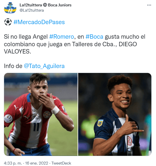 Una de las negociaciones que continúa activa es la de Ángel Romero. El delantero paraguayo coquetea con elxeneize,pero la opción de emigrar una vez más al fútbol del exterior podría tentarlo un poco más y en Boca lo saben.