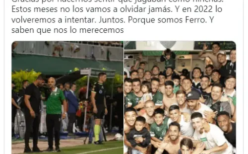 “Gracias. Gracias igual. Porque peleamos contra todo. Y sabemos qué significa contra todo”, escribió Ferro, haciendo una discreta referencia al polémico fallo arbitral. “Gracias por hacernos sentir que jugaban como hinchas. Estos meses no los vamos a olvidar jamás. Y en 2022 lo volveremos a intentar. Juntos. Porque somos Ferro. Y saben que nos lo merecemos”, cerró.