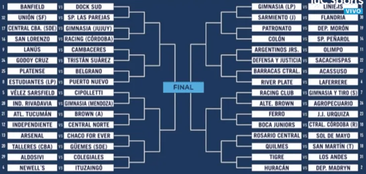 Vale destacar que, por cuestión de reglamento, los campeones del fútbol argentino jugarán en primera fase contra los equipos del Federal y la Primera C y D. No hay forma que se crucen dos de Primera División.