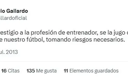 Antes de comenzar su legendario ciclo como DT de River en 2014, el Muñeco era un usuario habitual de Twitter y su análisis sobre el fútbol argentino era una constante, siendo uno de los mayores críticos sobre el nivel de juego en nuestro país. Sin embargo, el juego de aquel Newell’s despertó los elogios de “Napoleón” en redes sociales.