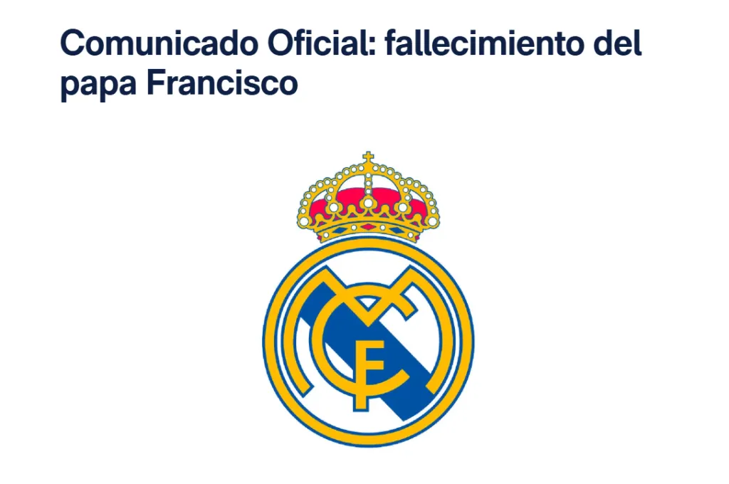 En esa misma línea, el Real Madrid emitió un comunicado que elevó en su sitio web: ”El Real Madrid C. F., su presidente y su Junta Directiva lamentan profundamente el fallecimiento del papa Francisco. El Real Madrid quiere expresar sus condolencias a toda la comunidad católica ante la pérdida de una figura histórica y universal. Durante su pontificado, marcado por la dimensión de su gran legado, el papa Francisco ha representado un enorme espíritu de solidaridad y apoyo a las personas más desfavorecidas y vulnerables. El papa Francisco ha fallecido a los 88 años de edad. Descanse en paz”.