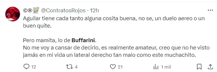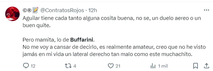 El ex-Boca, que llegó al Rojo de la mano del Apache, fue titular y no tuvo una buena actuación en el Estadio Tomás Adolfo Ducó. Al lateral derecho le costó el partido y terminó siendo reemplazado a los 23 minutos del segundo tiempo. Aún así, en las redes lo liquidaron.