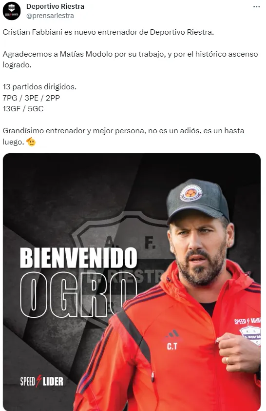 En las primeras tres jornadas en la Zona A, el equipo del Bajo Flores cosechó apenas un punto. Fue empate ante Instituto en su debut y luego derrotas ante Argentinos Juniors y Barracas Central. Matías Módolo dejó su puesto como entrenador tras el duelo ante Comunicaciones y, sorpresivamente, el Ogro Fabbiani tomará su lugar.