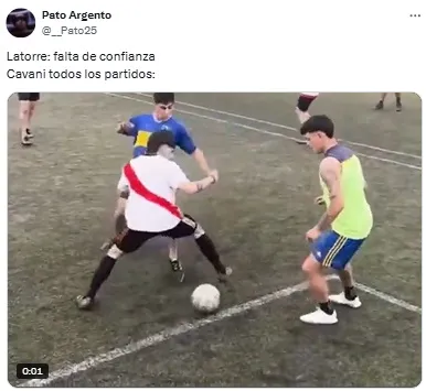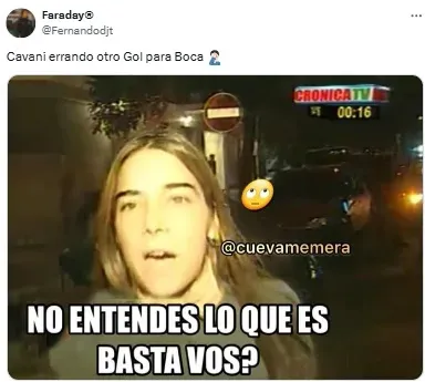 Con Sebastián Villa como líder de la Lepra, el inicio del encuentro fue eléctrico y de ida y vuelta. En ese contexto, Edinson Cavani tuvo una chance inmejorable para adelantar a los de Miguel Ángel Russo, pero le erró a la pelota de forma insólita y se convirtió en protagonista de los memes que comenzaron a aflorar.