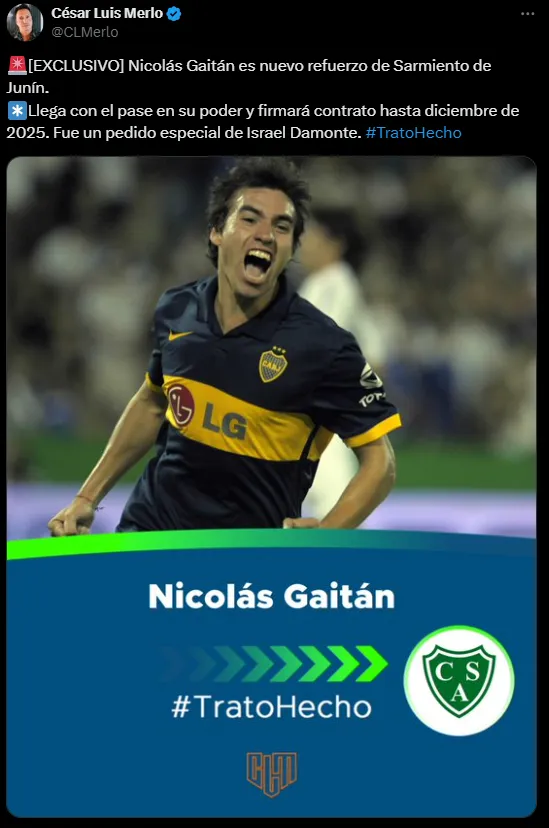 Se trata de Nicolás Gaitán, que regresará así al fútbol argentino tras 14 años. Su último paso había sido por Boca Juniors, club en el que debutó, entre 2008 y 2010. El volante ofensivo dejó un gran recuerdo en el Xeneize, pero nunca se pudo concretar su regreso.