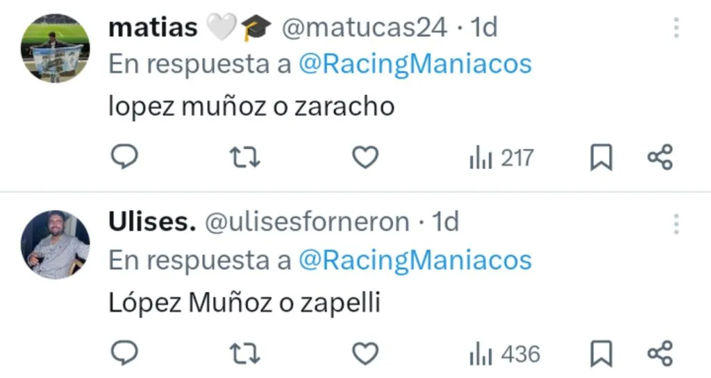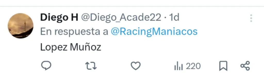 Desde la cuenta Racingmaníacos, muy popular entre los hinchas de La Academia, invitaron a votar por el reemplazante ideal para Juan Fernando Quintero y hubo un jugador, que como Facundo Farías milita en la MLS, que se impuso por amplia mayoría: Hernán López Muñoz.
