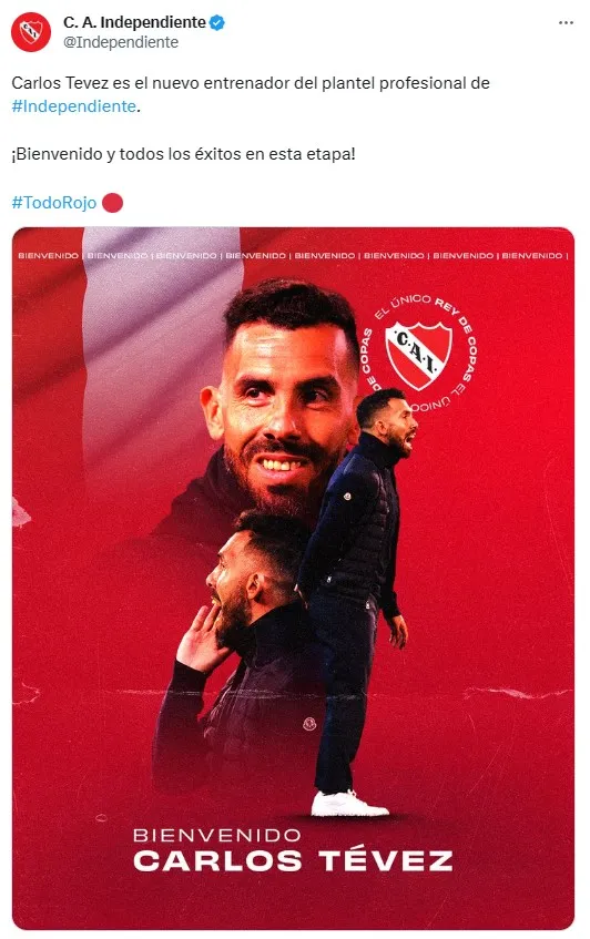 Lo que era un secreto a voces se oficializó en el mediodía de este martes, cuando el Rojo presentó formalmente a Tevez como director técnico a través de un posteo en redes sociales. No obstante, la introducción de Carlitos tuvo una pequeña “mancha” que no pasó desapercibido entre los hinchas.