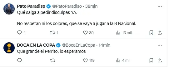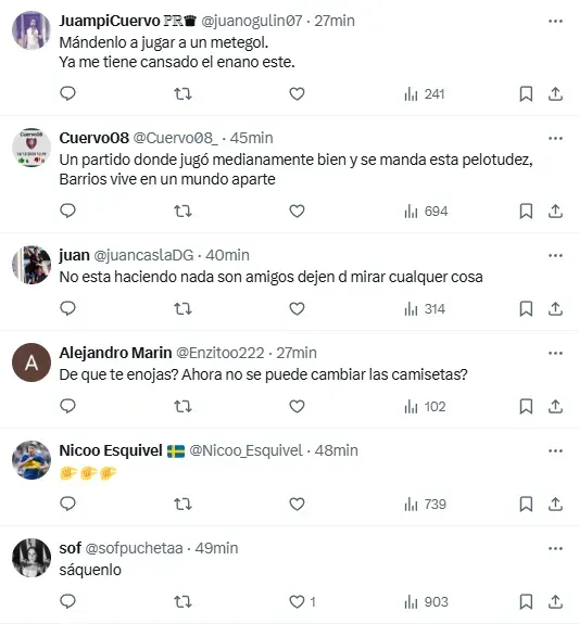 A su vez, hubo otro pequeño grupo de fanáticos que evitó dramatizar sobre lo ocurrido luego del pitazo final en el clásico, con justificaciones como que Barrios y Martegani “son amigos hace un montón”, “está cambiando la camiseta nada más”, entre otros. A continuación, el compilado de reacciones.