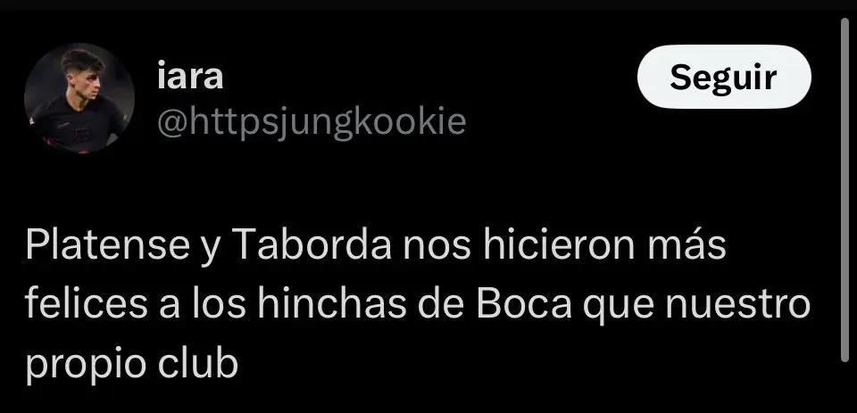 Así, como memes no tardaron en aparecer, tampoco lo hicieron los comentarios con seriedad. Es que muchos hinchas de Boca destacaban que Taborda había mostrado más condiciones que varios nombres del actual plantel azul y oro, como es el caso de Alan Velasco, Kevin Zenón y Carlos Palacios.