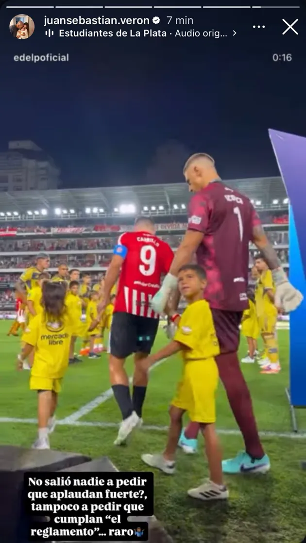 Juan Sebastián Verón no dejó pasar la oportunidad para subir el video a su cuenta oficial de Instagram e ironizar sobre lo sucedido. “¿No salió nadie a pedir que aplaudan fuerte? ¿Tampoco a pedir que cumplan con el reglamento? Raro“, soltó el presidente del equipo platense.