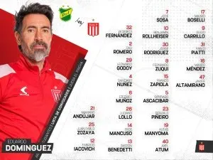 El equipo comandado por Eduardo Domínguez saldrá a la cancha con: Mariano Andujar; Leonardo Godoy, Zaid Romero, Santiago Núñez, Eros Mancuso; Jorge Rodríguez, Fernando Zuqui, José Sosa; Benjamín Rollheiser, Guido Carrillo y Franco Zapiola.