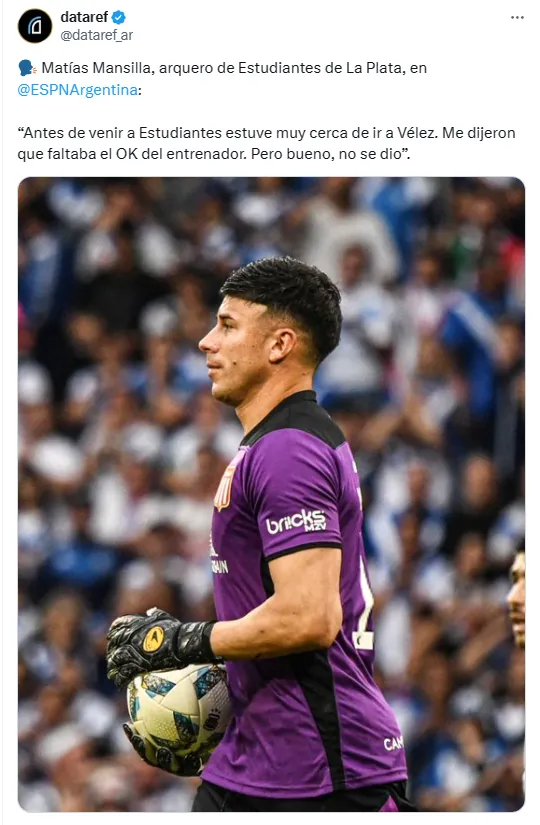 Recibido como el salvador que fue, Mansilla dio una entrevista con ESPN una vez finalizado el partido en el Estadio Único Madre de Ciudades en Santiago del Estero y, entre declaración y declaración, hizo una revelación inédita: estuvo a punto de jugar en Vélez, rival al que venció este domingo.