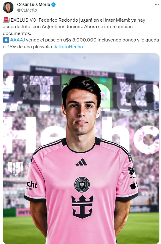 Es que, en este mercado, Argentinos Juniors recibió ofertas de gran calibre por el joven mediocampista y se había conocido que jugaría en el exterior tras el Preolímpico. Según la información de César Luis Merlo, periodista especializado en transferencias, se marchará a Inter Miami.