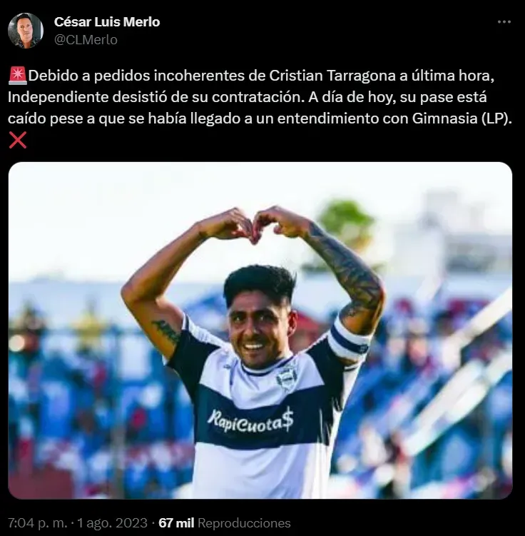 Sin embargo, según indico posteriormente el periodista César Merlo, la operación se cayó a último momento y de manera inesperada. ¿El motivo? “Pedidos incoherentes” por parte del futbolista, por lo que finalmente no se pondría la camiseta del Rojo.