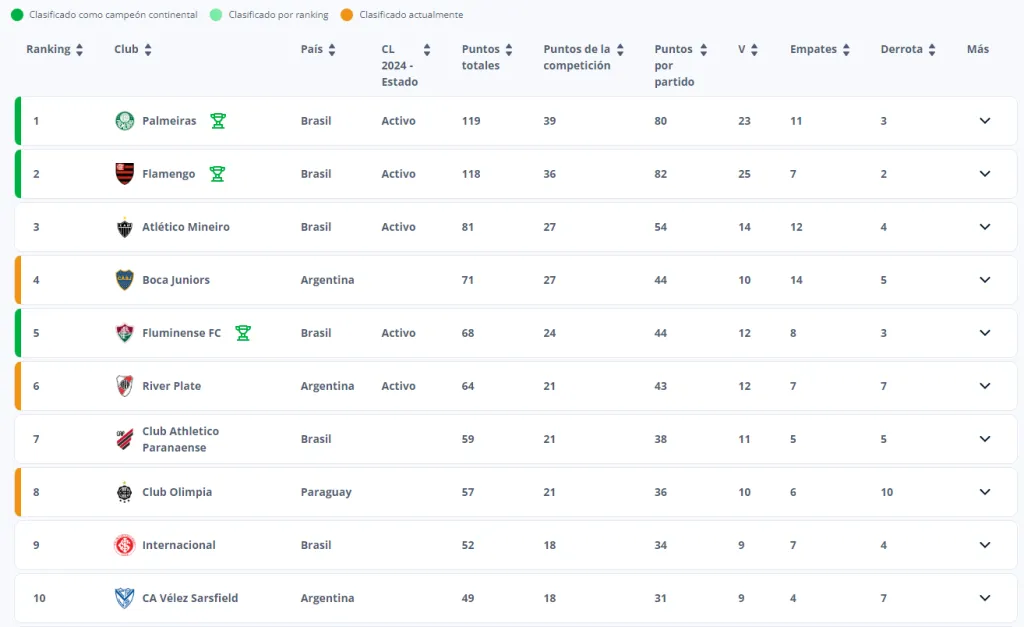 Esta última vía es la que mantiene en vilo a Boca Juniors y a River Plate, aunque el Millonario también tiene la posibilidad de clasificarse de ganar la Copa Libertadores de este 2024. Cabe recordar que el Xeneize jugará la Sudamericana por lo que no podrá sumar al ranking en este último año.