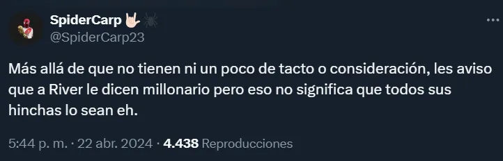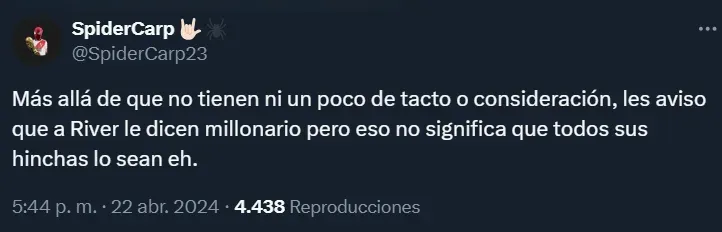 En ese contexto, el equipo del barrio porteño de Núñez detalló fechas, precios y pasos a seguir para poder conseguir los abonos denominados “Tu Lugar en el Monumental” en la entidad Millonaria. Y lo cierto es que los hinchas de River no recibieron de la mejor manera esta noticia teniendo en cuenta los elevados costos de los abonos.