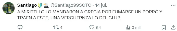 La noticia no cayó para nada bien entre los simpatizantes del Halcón y se lo hicieron saber a las autoridades. En las redes sociales, el posteo de presentación del delantero se llenó de comentarios negativos, con varios hinchas recriminando la decisión de contratarlo.