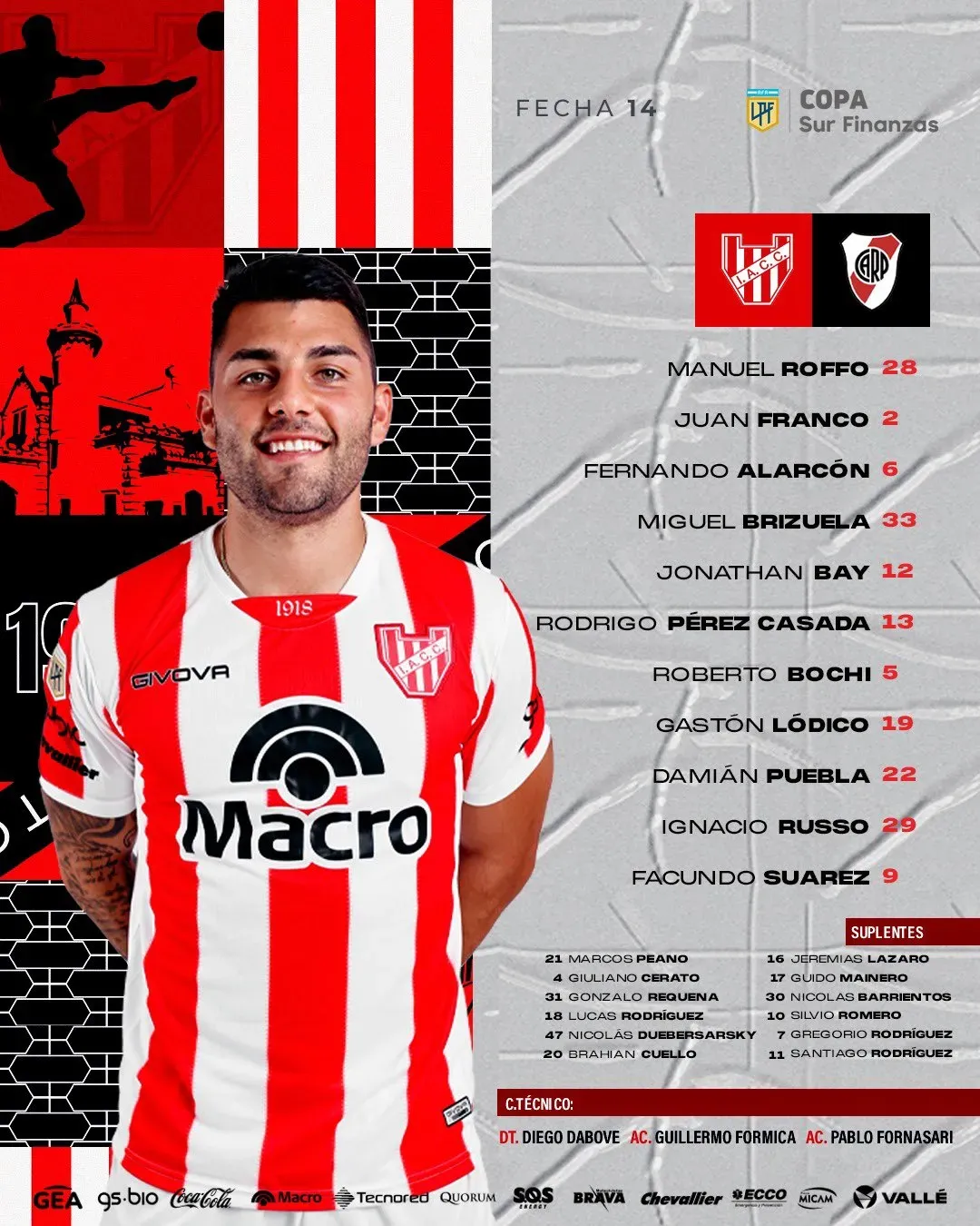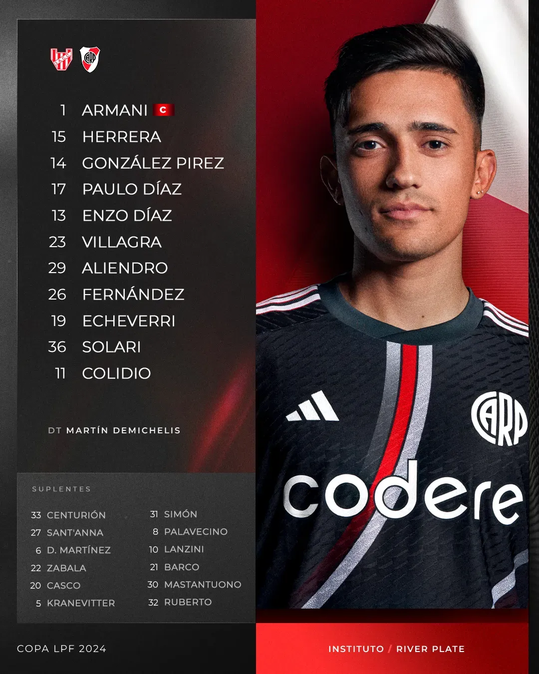 A falta de confirmación oficial, el XI que se perfila a horas del partido sería: Franco Armani; Andrés Herrera, Leandro González Pirez, Paulo Díaz, Enzo Díaz; Rodrigo Villagra, Rodrigo Aliendro, Nacho Fernández, Claudio Echeverri; Pablo Solari y Facundo Colidio o Agustín Ruberto.