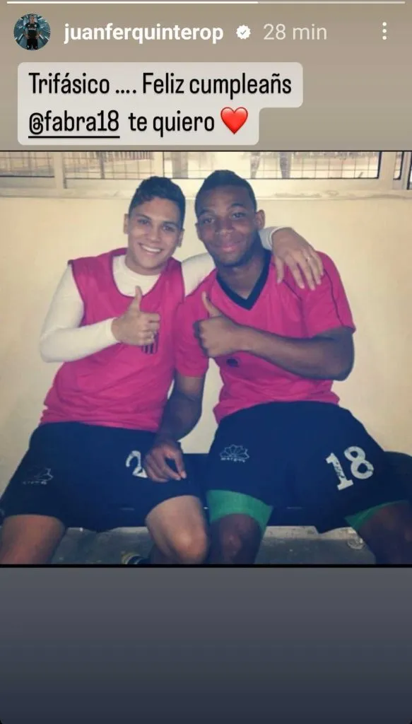 En el día de su cumpleaños, los hinchas se manifestaron a favor, pero mayormente en contra del lateral en un posteo del club para felicitarlo. Esta noche, Juanfer Quintero salió a bancar a su compatriota e hizo público su saludo con una historia de Instagram.