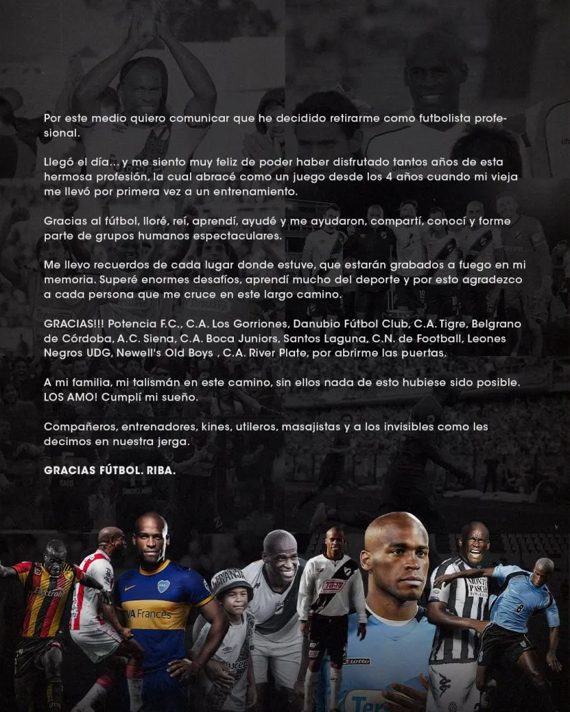 A través de un posteo en sus redes sociales, el charrúa, que se desempeñaba como volante y defensor, cerró esta etapa con un emotivo comunicado: “Por este medio quiero comunicar que he decidido retirarme como futbolista profesional“.