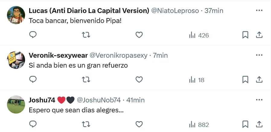 Fue allí cuando los fanáticos aprovecharon la publicación para dejarle un mensaje al atacante de 35 años de cara a lo que será su ciclo en el conjunto rosarino. Algunos de los posteos más destacados entre los comentarios, decían: “Puede salir muy bien o muy mal”, “hacé goles por favor” y “subido al barco desde el día 1”.