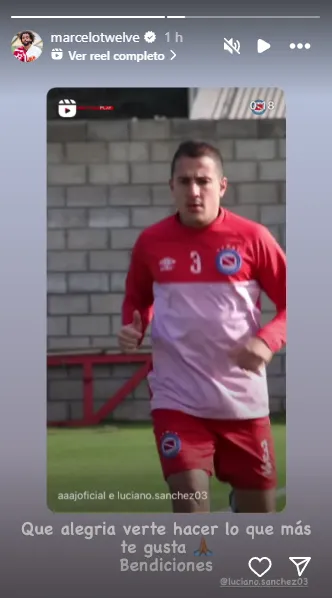 En las últimas horas en las cuentas oficiales del Bicho postearon un video suyo en el que se lo ve entrenando de manera diferenciada, pero ya con ejercicios con pelota y con cargas moderadas, dejando en claro que se avecina su regreso a las canchas tras un año afuera. Esta publicación en Instagram sobre Luciano Sánchez le llegó a Marcelo, quien no tardó en reaccionar a su reaparición de manera alegre.