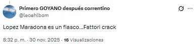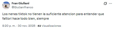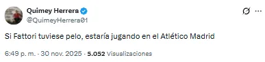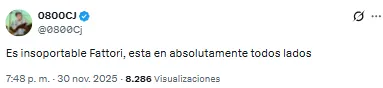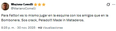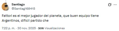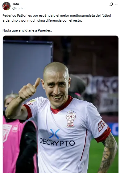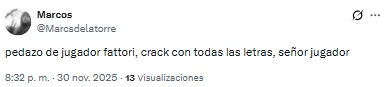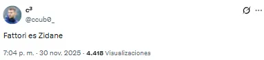 “Fattori es Zidane”, resumió uno de los usuarios. Otro, en cambio, resaltó: “Es por escándalo el mejor mediocampista del fútbol argentino y por muchísima diferencia sobre el resto. Nada que envidiarle a Paredes”.