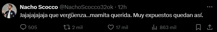 Por su parte, el ex atacante de la Lepra también se manifestó en su cuenta de X y lo hizo para quejarse del arbitraje: “Jajajajaja que vergüenza…. Mamita querida. Muy expuestos quedan así”. El tuit fue publicado inclusive antes que termine el partido. La gota que colmó el vaso fue la mano de Yonnathan Rak dentro del área que no fue considerada penal por Pablo Echavarría.
