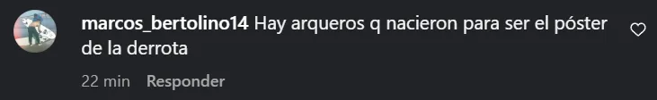 Una vez consumada la derrota del conjunto de La Paternal, muchos hinchas fueron a criticarlo a sus redes sociales. Los últimos posteos publicados en la cuenta de Instagram del arquero se llenaron de comentarios cuestionando el nivel del subcampeón del Mundial 2014.