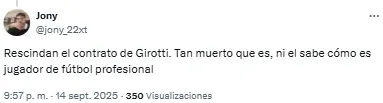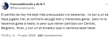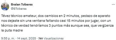 En ese contexto, los hinchas del combinado cordobés estallaron en redes sociales por el rendimiento del equipo. Sin embargo, muchas de las críticas estuvieron dirigidas hacia Tévez, que le dio a su plantel 4 días libres en la previa de este partido y, este lunes, también descansaron antes de preparar el próximo trámite.